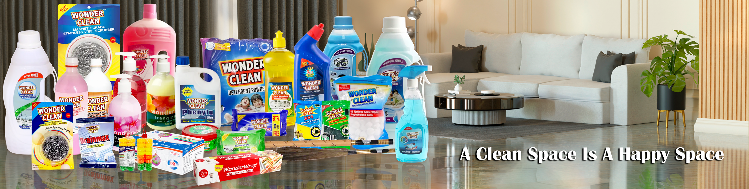 SP International Industries Pvt. Ltd. manufactures Dish Wash Liquid, Dish Wash Bar, Floor Cleaner, Black Phenyle, Toilet Cleaner, Grass Broom, Detergent Powder, Detergent Cake, Scrub Pad, Sponge & Scrub, Stainless Steel Scrubber, Naphthalene Balls under the brand name Wonder Clean.