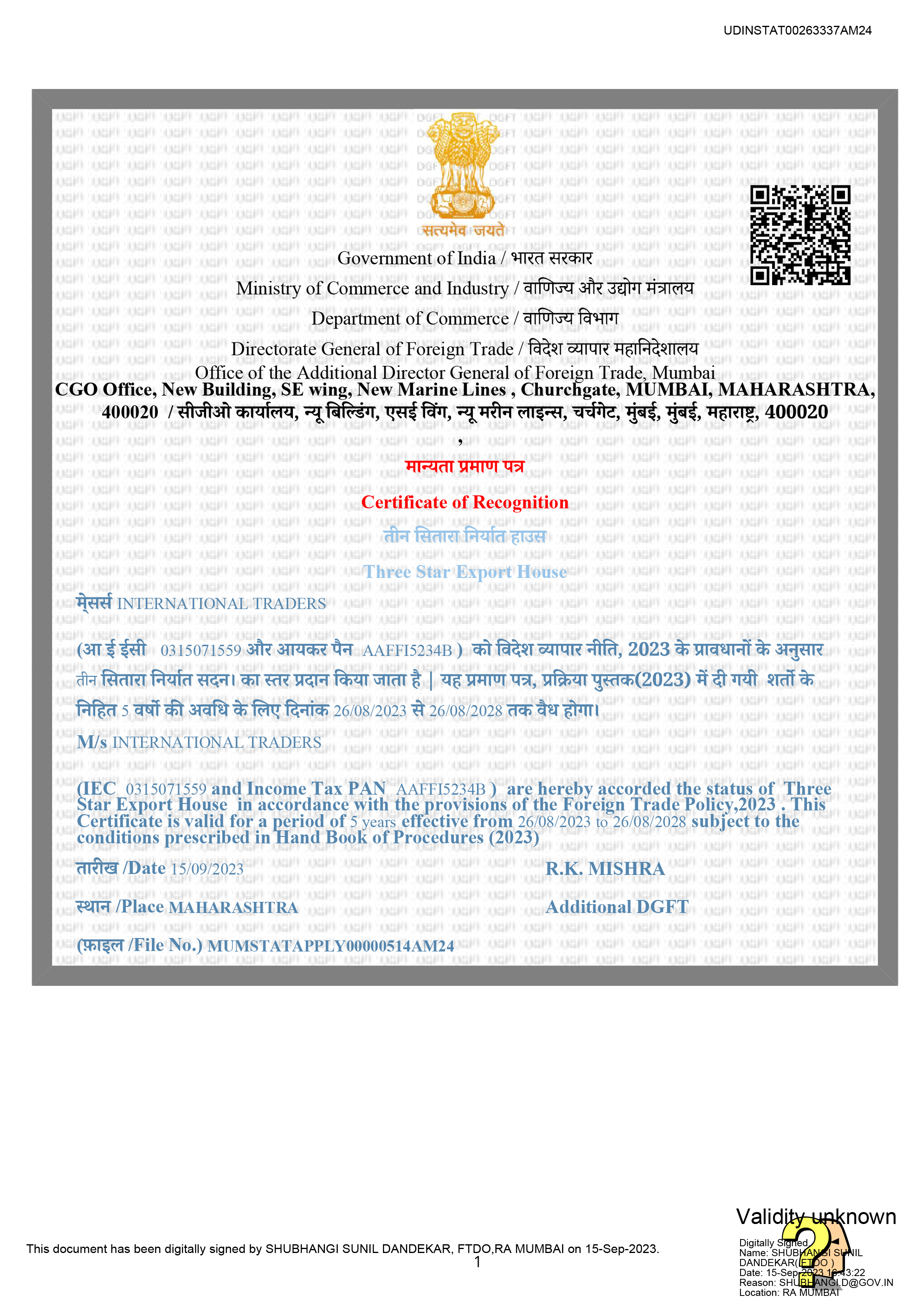 Download Certificate | Last Issue Date: 15 September 2023