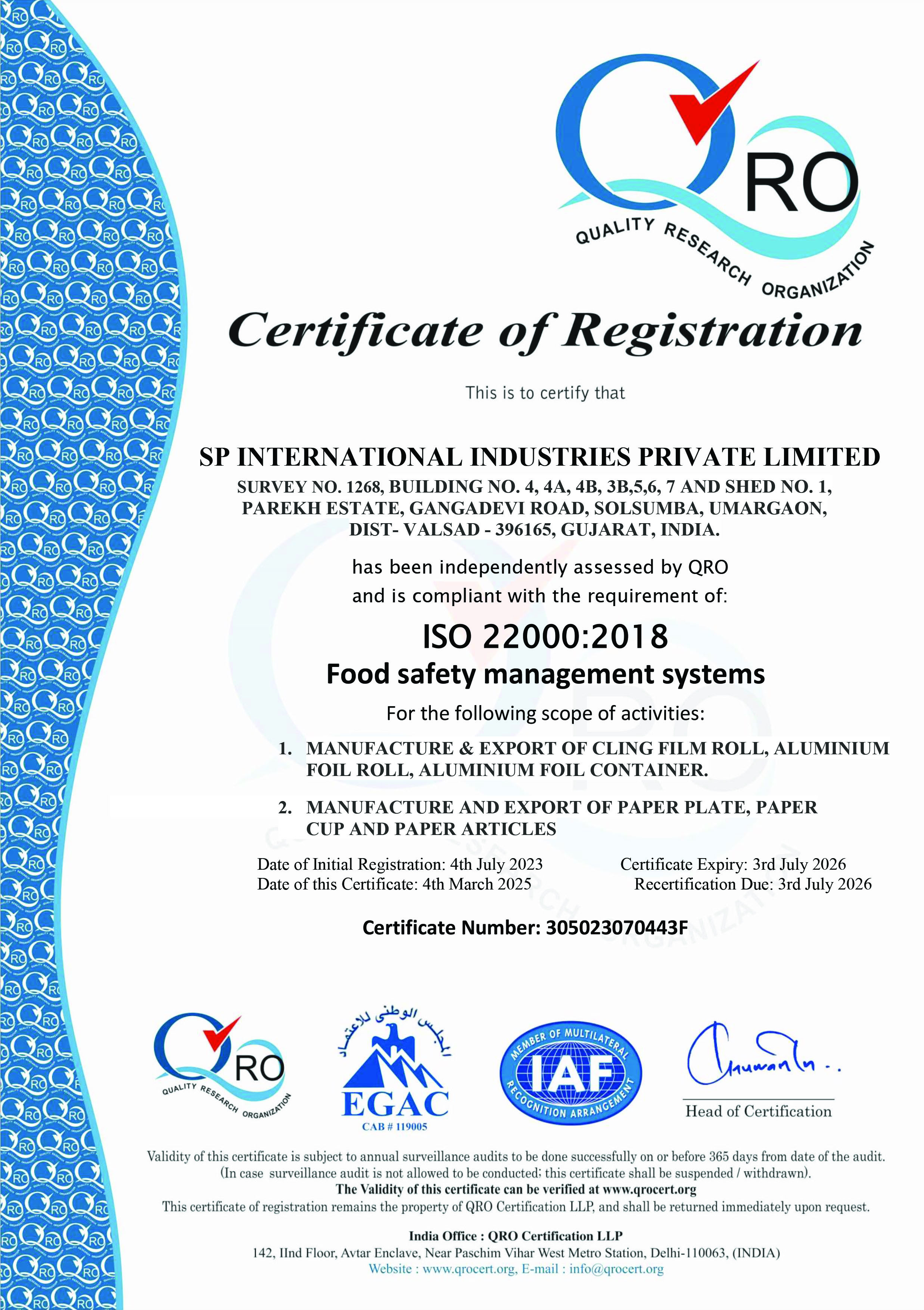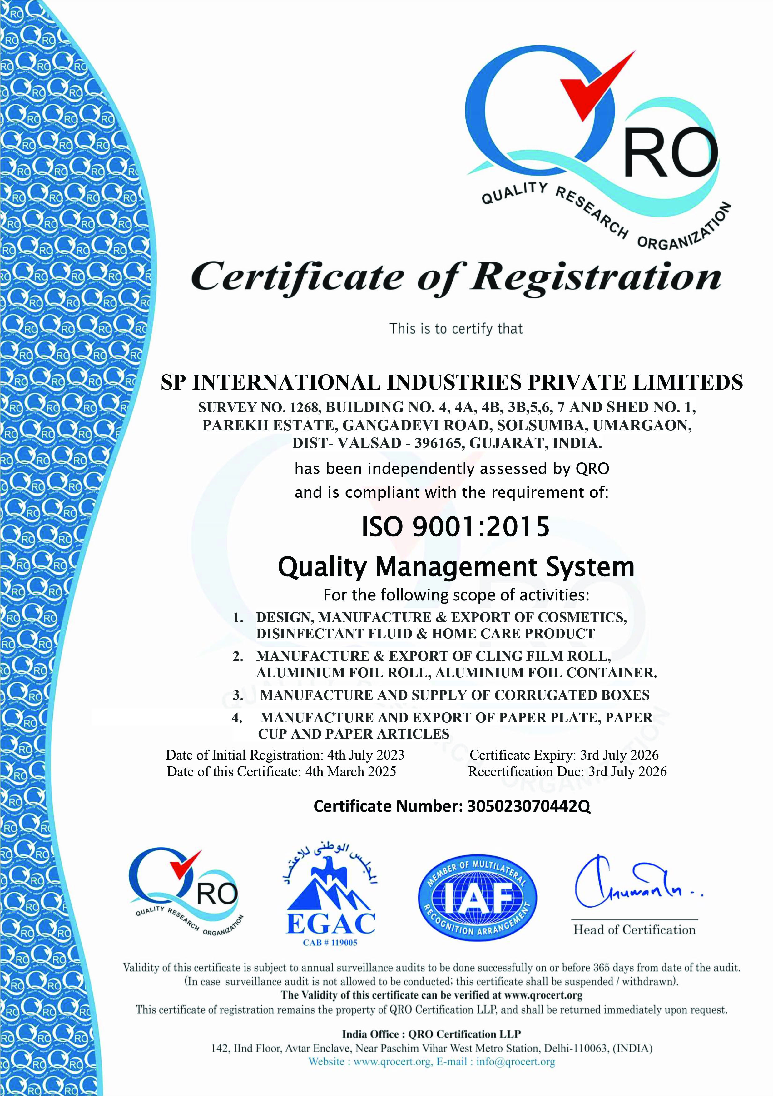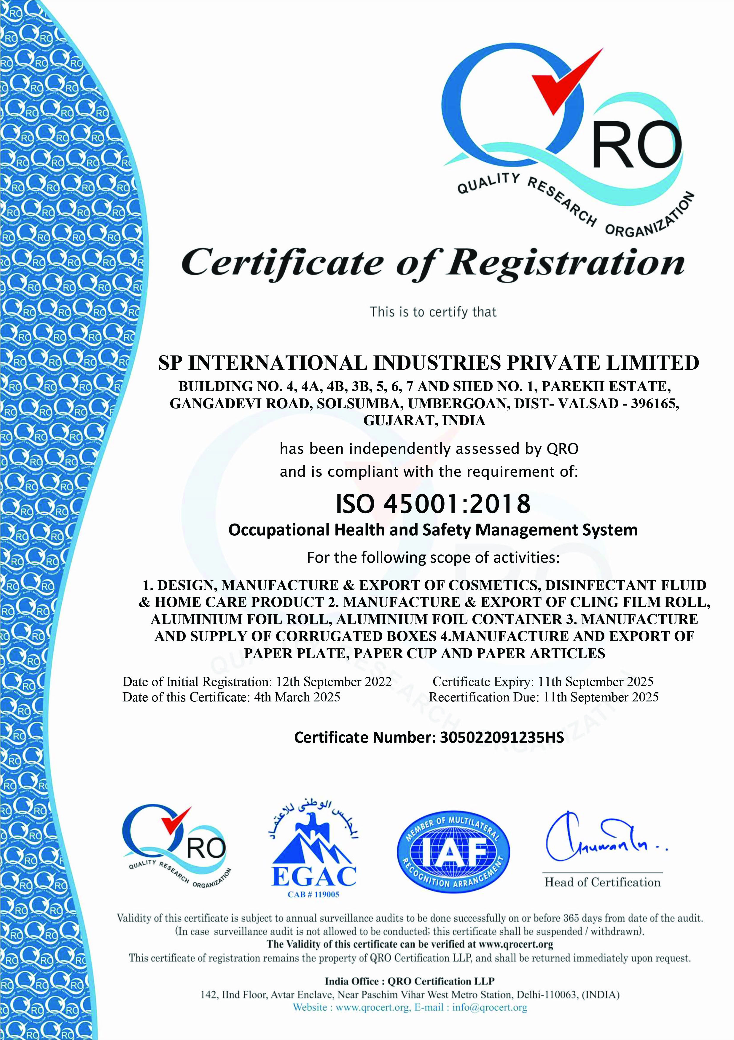 Being part of a supply chain with authorized economic operators means being part of a reliable supply chain. our achievement of the AEO certificate, recognizing our commitment to secure and efficient supply chain practices. This milestone highlights our dedication to SP International Industries Pvt. Ltd. standards and customer trust.