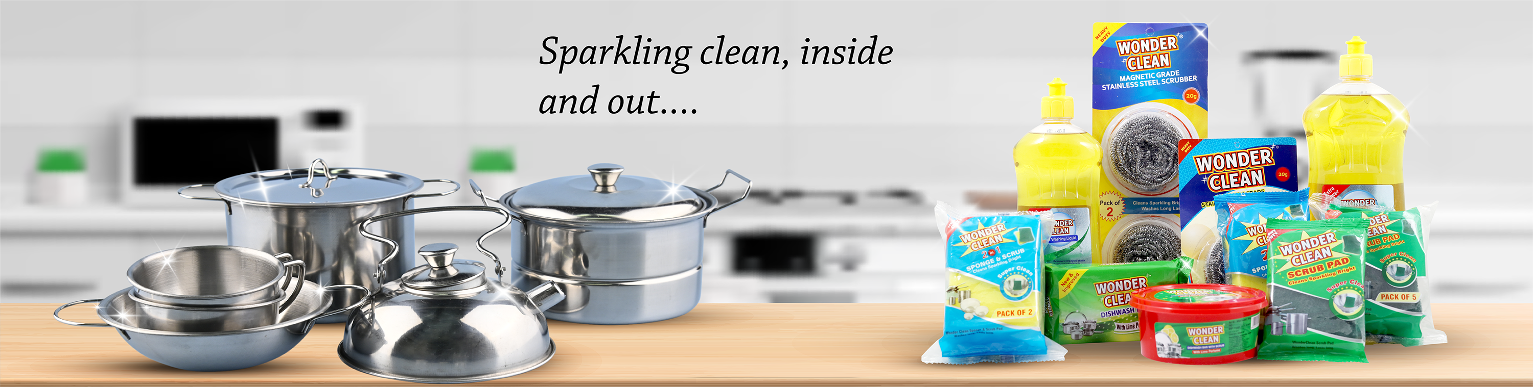 SP International Industries Pvt. Ltd. manufactures Dish Wash Bar, Dishwash Bar With Scrub, Dishwash Liquid, Scrub Pad, Sponge & Scrub, Stainless Steel Scrubber under the brand name Wonder Clean.