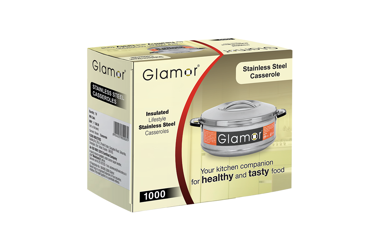 The Stainless Steel Casserole 1000 is a durable, insulated container designed to keep food warm and fresh for extended periods. With a 1000 ml capacity, it’s perfect for serving hot meals like rice, soups, or curries. The stainless steel construction ensures long-lasting durability, while the insulated design helps maintain the temperature of the food.