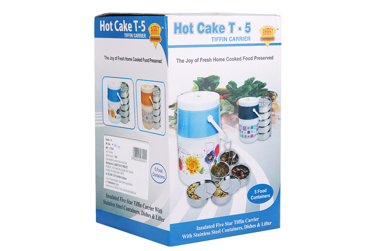 A 5-container tiffin is a compact and convenient lunchbox designed for carrying meals. It typically consists of two separate, stackable containers, allowing users to pack multiple food items without mixing them. Ideal for portion control and meal organization, this tiffin is perfect for carrying a main course and a side dish or snacks.